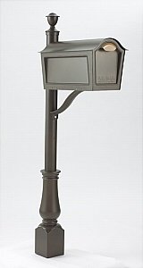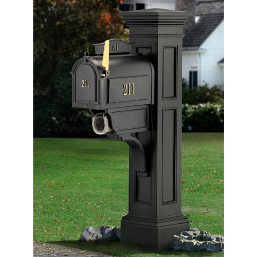5805B Color: Black Pictured in Black Distinctive in Design. Bring the past together with the present in a way that s provocative and radiant. Good taste and superior quality never go out of style. Features: -Mailbox post. -Mail Post Collection. -Available in Black, Clay, Granite and White colors. -Installs easily over a standard 4 x 4 wood post. -Made from high quality polyethylene. -Built in UV inhibitors for long lasting protection from the elements. -Includes large decorative post and mailbox support arm with built-in paper holder slot. -Product ships in 2 boxes (liberty post MP5806B / arm MP5807B). -Medium or large mailbox recommended, minimum 7 inch width. -Best suited for mailboxes weighing less than 16lbs. -Note: 4 x 4 wood post, mailbox, and mailbox mounting hardware not included. -15-year limited warranty. -Assembly required. -Dimensions: 63'' H x 13.5'' W x 30'' D.